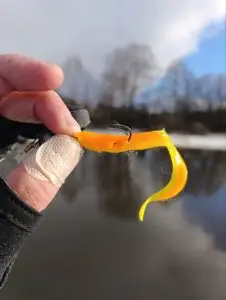 Очередной раз рыбалку сделал угорь 3′ в цвете sf209 оранжево-желтый